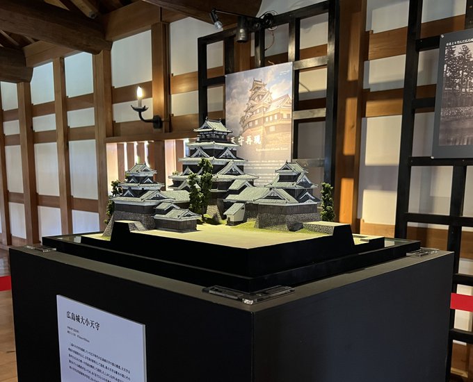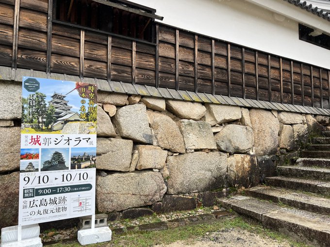 【展示のヒミツ①】 気づいた方おられるかわかりませんが、1/150の模型は、豊臣大坂城天守以外全て、東西南北の方位を実物と合わせて展示しています。 #驚異の城郭ジオラマ展 ⭐️時空再現!日本の名城⭐️ ー島充 驚異の城郭ジオラマ展ー @広島城二の丸復元建物にて10/10まで