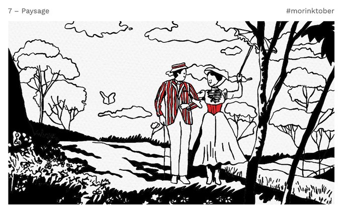 @CaptainBagarre @marieboiseau Bon, on va essayer de rattraper le retard, J7 d'inktober avec le mot paysage. Bonne chance pour trouver, je compte sur toi @CaptainBagarre, cette fois-ci c'est la bonne, tu vas y arriver 💪 #morinktober #inktober2022 Ah oui et hier (enfin le 6) c'était Jurassic Park (1993) 🦕