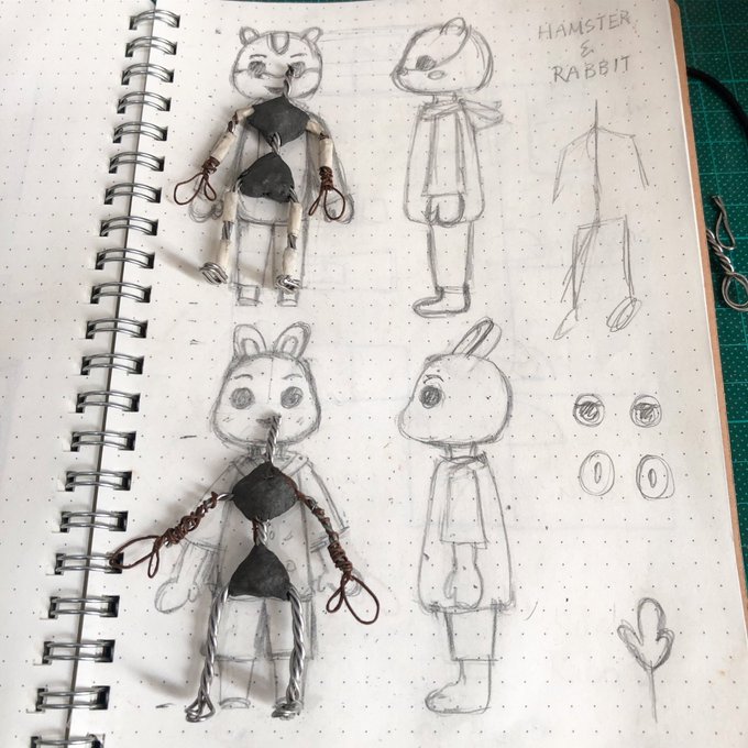 Initial drawing of little hamster & rabbit. Their appearance was changed a bit when I made them. instagram.com/p/B_UdQLMD4s2/… #needlefelting #littlehamsternrabbit #feltcraft #puppet #miniature #woolfelting #handcraft #crafting #handmade #makingprocess #stopmotion #羊毛フェルト