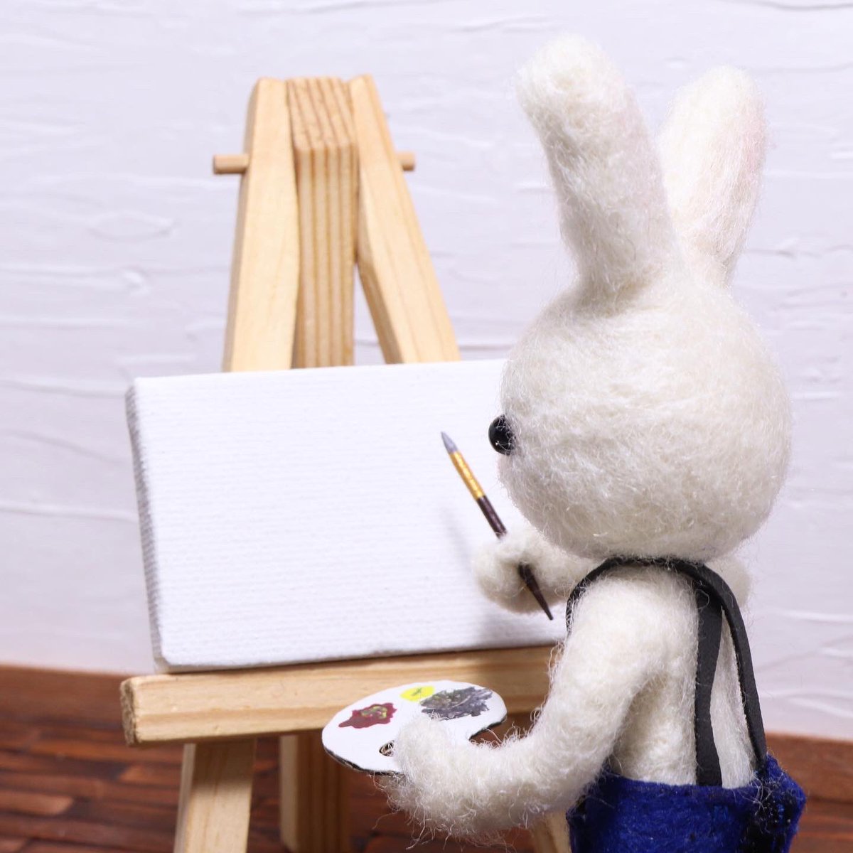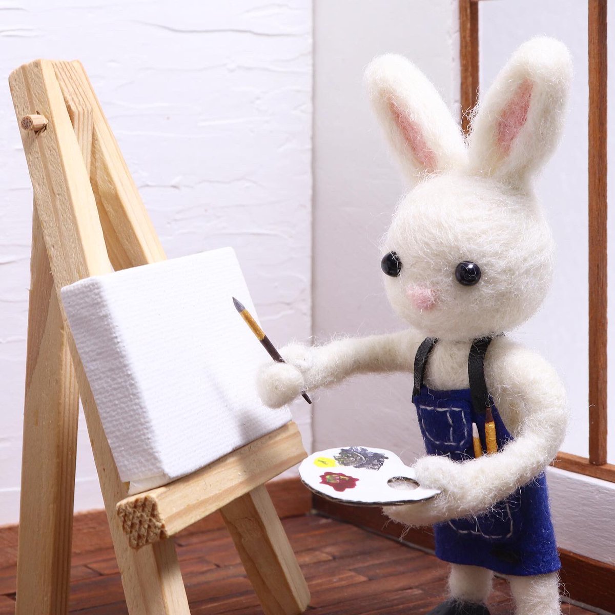 🐰 : Hey Ham Ham,I wanna draw,Can you do a pose. 🐹 : Sure, Here we go. 🤾♀️ 🐰 : Um.....😶OK. Please hold it for 3 hours. 🐹 : 😐😐😐 #littlehamsterandrabbit #needlefelting #storytelling #hamster #rabbit #feltcraft #puppet #miniature #woolfelting #handcraft #羊毛フェルト #制作
