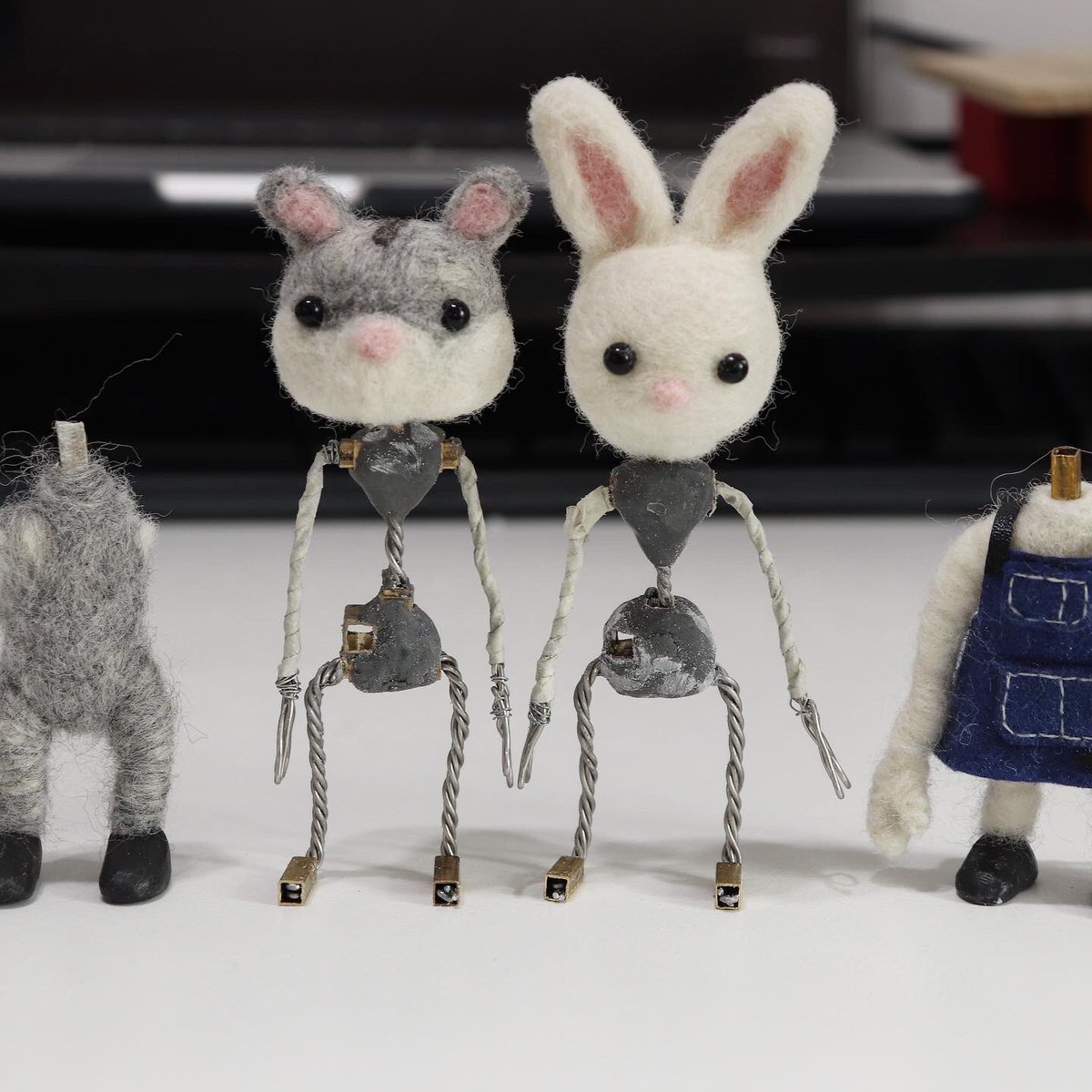 The wire armatures are broken and it’s not easy to fix. So I repaired Ham Ham and Rabby’s body by using a new method to do armature. This new armature will be easy to repair for next time.And They grow. #armature #handcraft #stopmotion #animation #handmade #puppet #羊毛フェルト