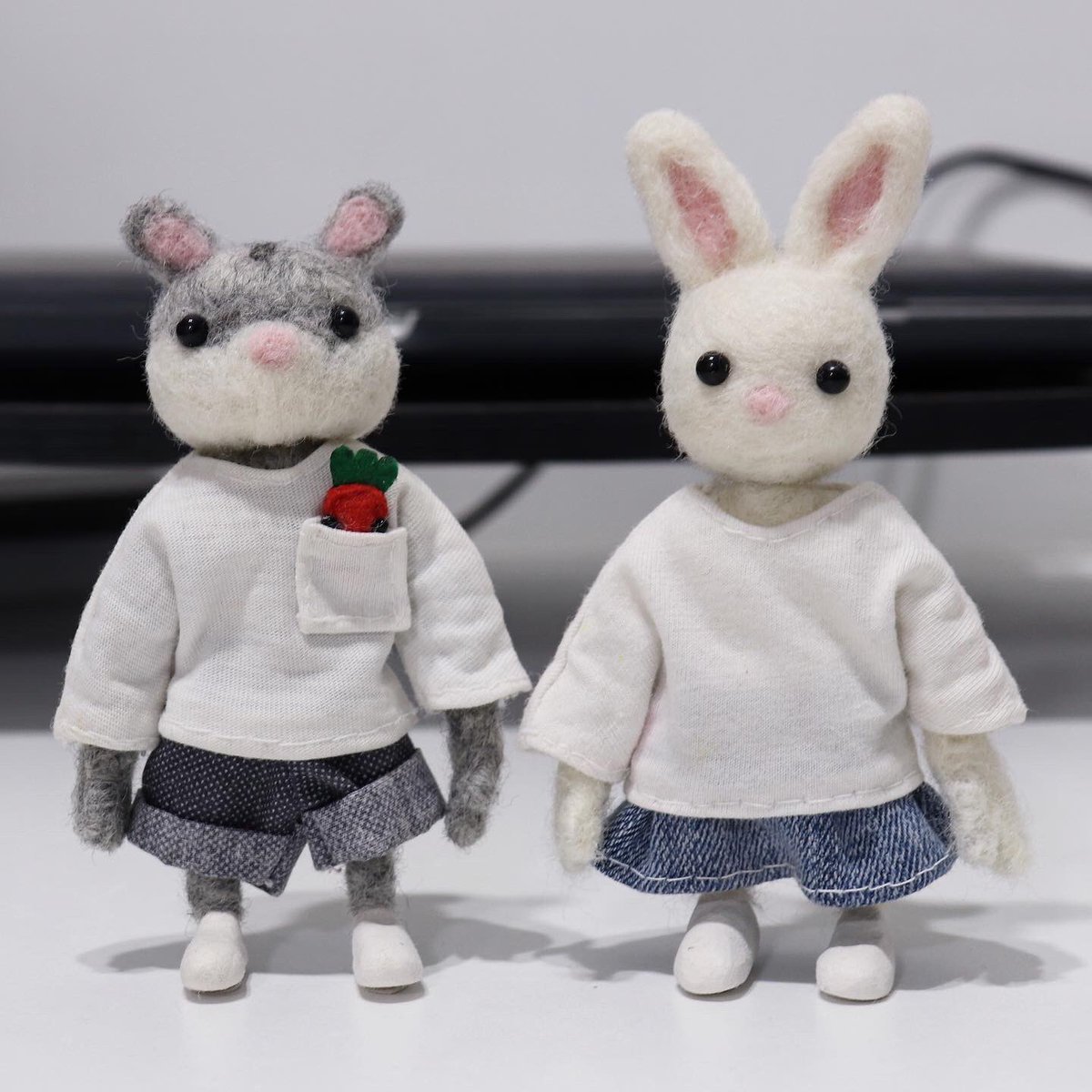 Welcome to our new actors and actresses 🐰🐰🐰 #characterdesign #characteranimation #stopmotion #animation #puppet #neddlefelting #miniature #handmade #ミニチュア #ストップモーション #コマ撮り #羊毛氈 #羊毛フェルト