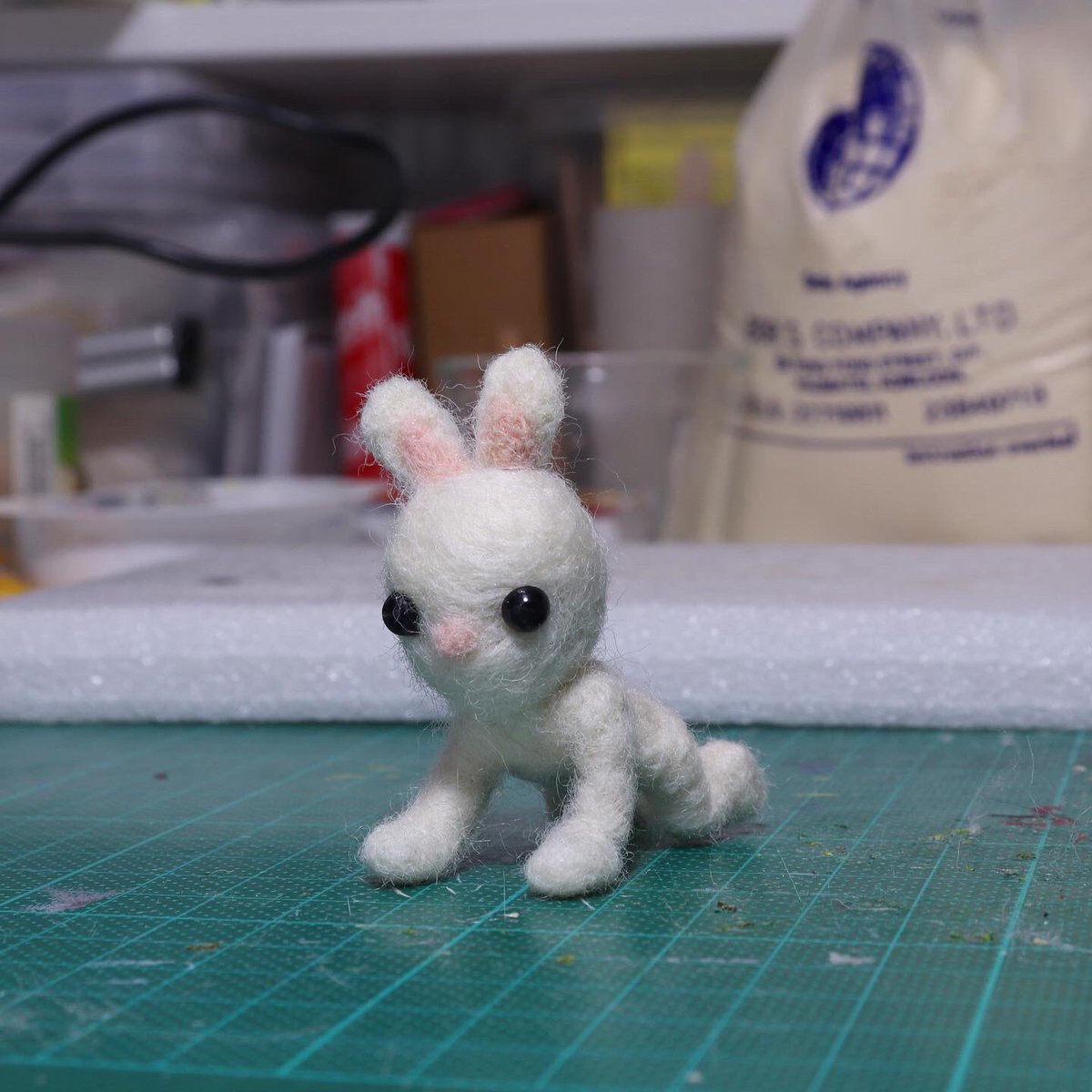 I have made this baby Rabby. She looks so cute ☺️. #armature #modelmaking #handcraft #stopmotion #animation #handmade #puppet #puppetmaking #ストップモーション #コマ撮り #羊毛フェルト