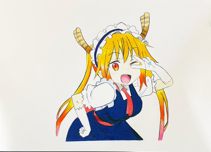 4 41 友達のリクエスト🤝 小林さんちのメイドラゴンのトール描きました〜❣️ 口の部分うまくいったので見てね〜😉 #小林さんちのメイドラゴン #トール #模写 #絵描きさんと繋がりたい #色鉛筆 21/05/03 17:03
