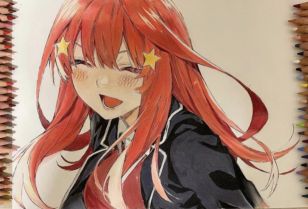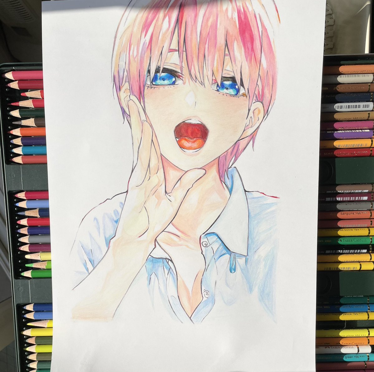 色鉛筆で一花描きました❗️ 頑張ったのでいいね❤️くださると、嬉しいです☺️ #五等分の花嫁 #中野一花 #模写 #色鉛筆 #拡散RT希望