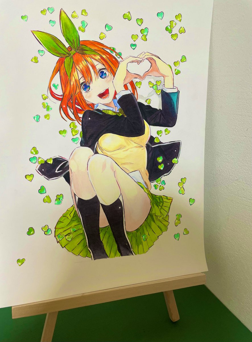 五等分の花嫁の中野四葉 描きました❗ 明日友達にあげるので、喜んでくれたら嬉しいな〜☺️ #五等分の花嫁 #中野四葉 #五等分の花嫁映画 #絵描きさんと繋がりたい #模写