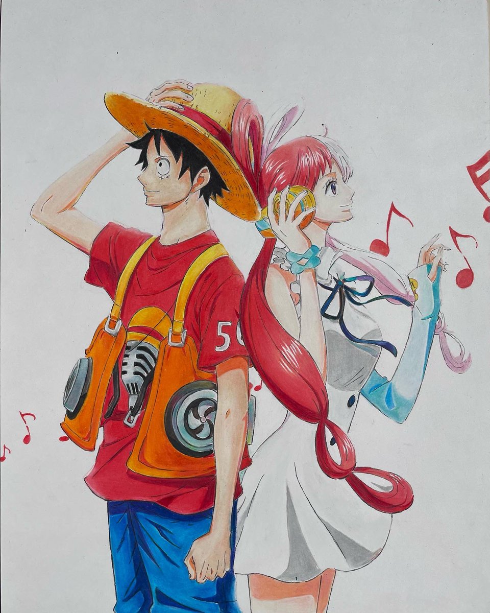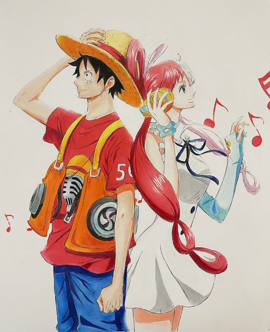 色鉛筆で ウタ&ルフィ描きました🎶 #OP_FILMRED #ルフィ #ONEPIECE #ウタ