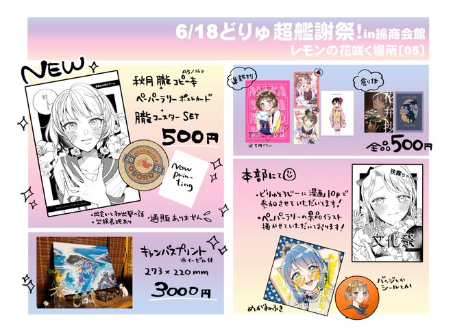 C102 1日目東ウ48a レモンの花咲く場所 お品書きです。当日はどうぞよろしくお願いいたします! 色紙とファンボックス支援者特典はいま描いています☺️☺️!!! 通販はメロンブックス様にお願いしております。 melonbooks.co.jp/circle/index.p…