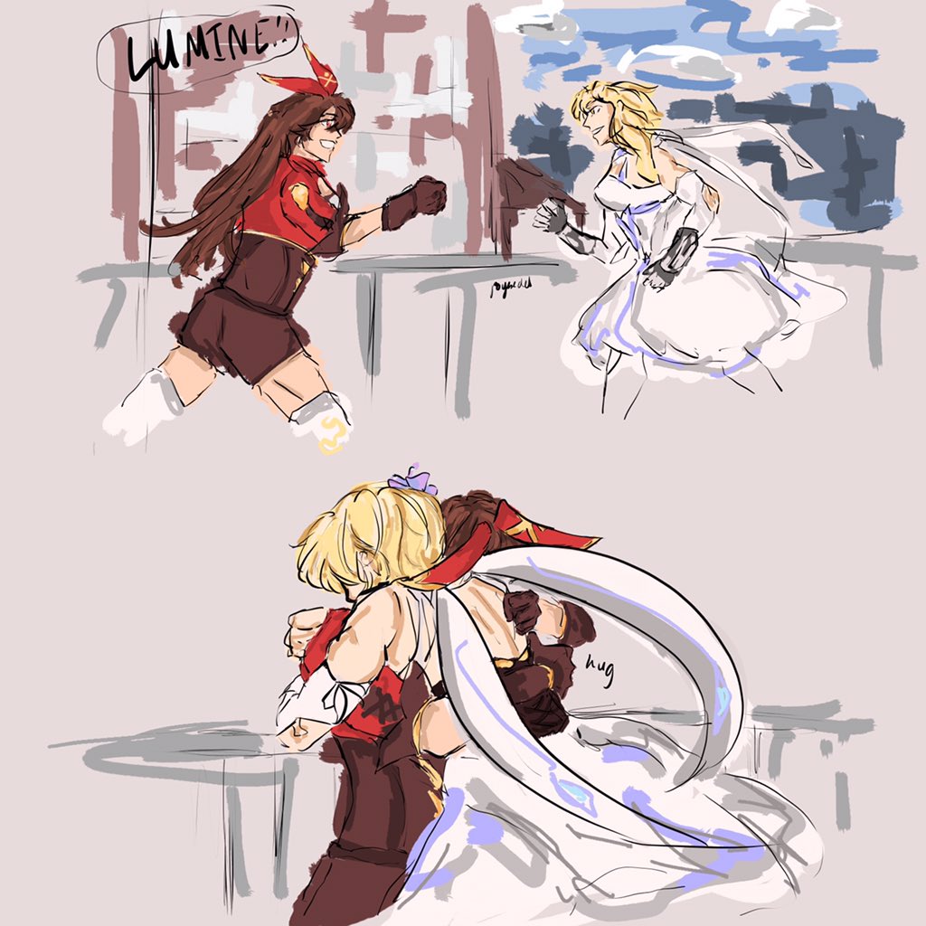 i don’t think i can stop thinking about them,, reading that gave me a headache... #原神 #Genshin #genshinimpactfanart #GenshinImapct #amber #lumine #lumber #lumiamber