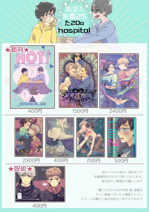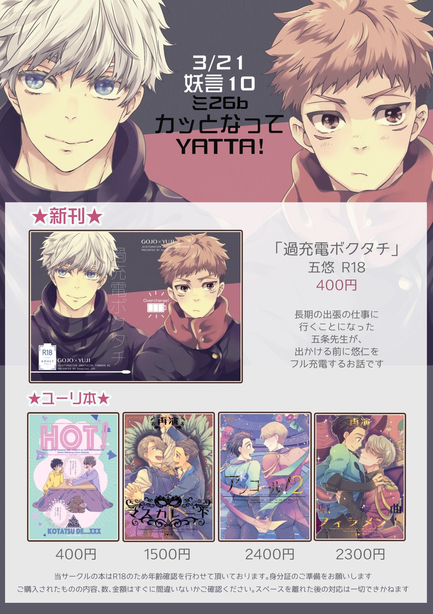 書店先行になる可能性大なのですが、3/21のイベント合わせ(希望)でヴィク勇五悠それぞれ通販予約だけお願いしました「HOT」ec.toranoana.jp/joshi_r/ec/ite…「過充電ボクタチ」ec.toranoana.jp/joshi_r/ec/ite…