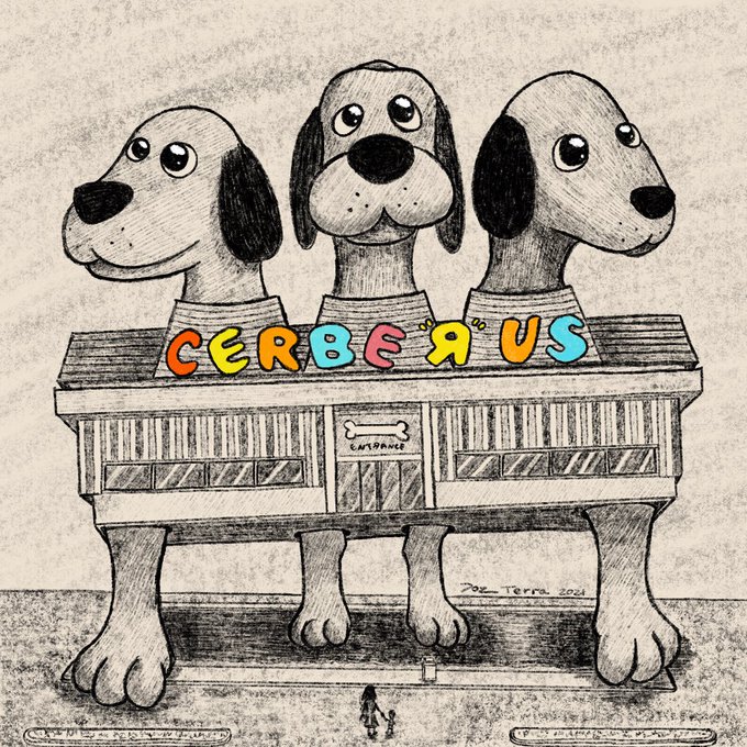 “I think we got the wrong store” / Cerbe “R” Us #inktober #inktober2021 #drawlloween #Drawlloween2021 #cerberus #toysrus