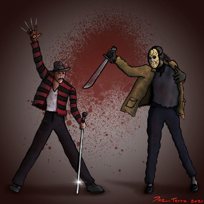 Killer Music: Freddie Merckrueger & Michael Jason. #inktober #inktober2021 #drawlloween #drawlloween2021 #jasonvoorhees #freddykrueger #freddiemercury #michaeljackson