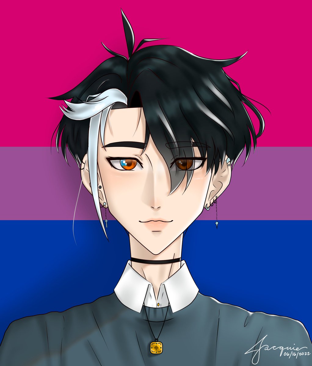 I AM BACC WITH ART (ノ◕ヮ◕)ノ:・゚✧ Ik it's halfway through June but just finished this today (;´д`)ゞ Updated my fave male OC's look too! He has heterophobia! o((>ω< ))o Oh wait no it's heterochromia WELL HAPPY PRIDE MONTH! #arttwt #commissionsopen #opencommissions #artph