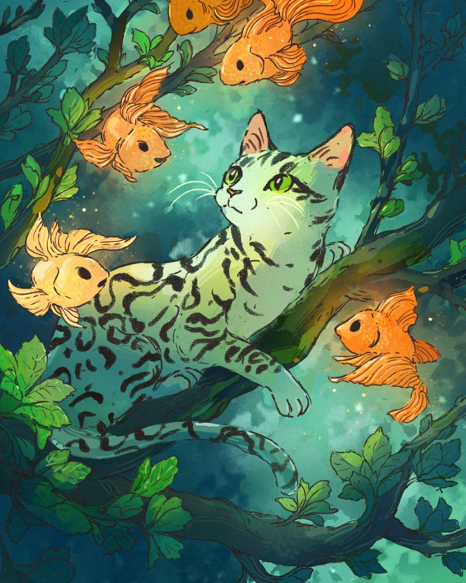 1735 10.3K A cat surrounded by glowing goldfish 23/04/22 23:20