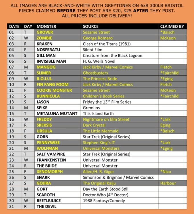 Today's #Inktober is that #Ghostbusters gremlin himself... #Slimer! (Spike, Gorn, Salt Vampire Snark, Gort, and the Devil are still available for just $20 delivered! The Kraken and Invisible Man are available for $25 delivered! Comment or message me to claim these last few!)