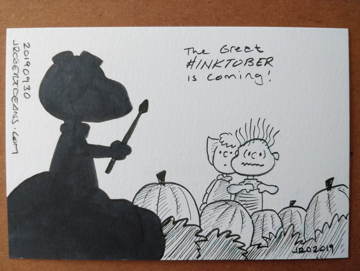 Having fun with today's #PenAndInk #Quicksketch - a harbinger to tomorrow! #GreatPumpkin #Inktober #Peanuts #Linus #InkingAce #Sally #PumpkinPatch #Snoopy