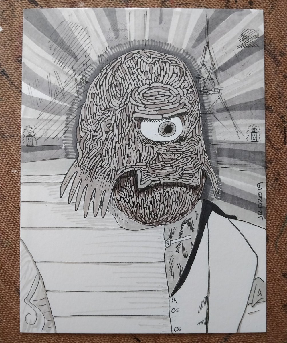 It's the penultimate #Inktober #Monster - #Beetlejuice (I started out doing a more direct representation of Keaton, then went off it to highlight the more menacing aspects of the character.)
