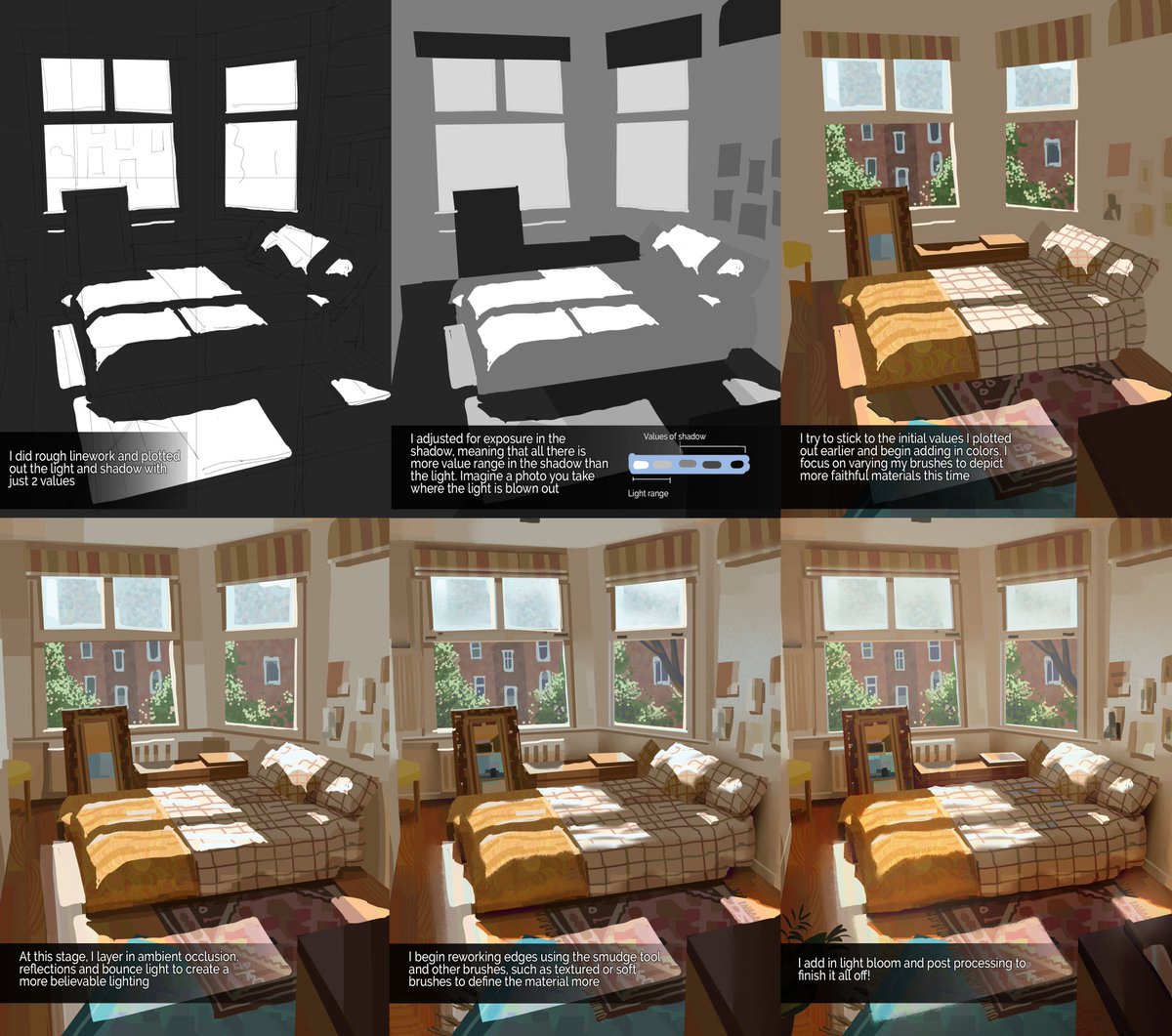 Cozy bedroom vibes study. Helps me to forget about the winter blues for a while. Step by step process included! #illustration #digitalpainting #art