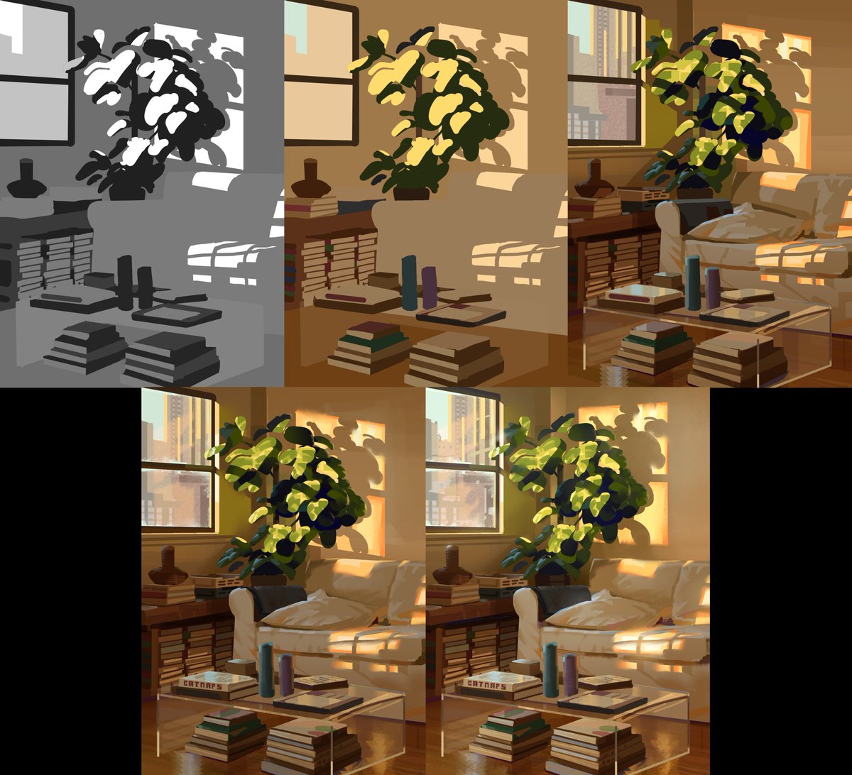Another cozy indoor study ☺️ Included a quick step by step as well! #digitalart #illustration