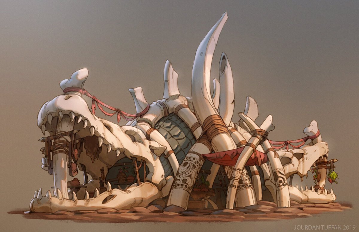 What happens if you use the remains of giant crocodiles and set up shop in it? 🐊🛖 #conceptart #illustration #digitalpainting