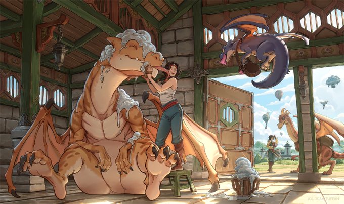 Imagine a world where your Uber Eats is delivered by dragon riders and food stalls can be found in hot air balloons in the sky. #illustration #ArtistOnTwitter