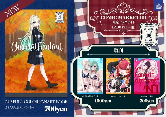 【コミケお品書き】 2022/12/30 東 K08b LITTLE STUPID 新刊はぶいすぽっ!の藍沢エマさん(ほぼ)オンリーファンアート本です #C101 #コミケ #コミケ101 #お品書き #C101お品書き ■webカタログサークスページ webcatalog-free.circle.ms/Circle/16816398 ■委託(メロンブックスさん) melonbooks.co.jp/detail/detail.…