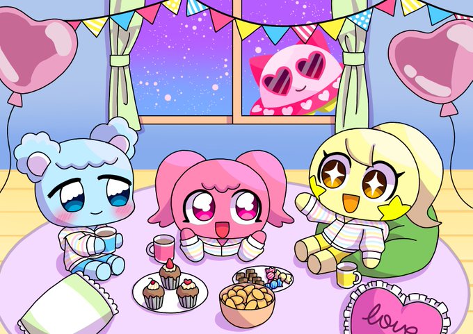 #PPYFanart おそろいパジャマでパジャマパーティーをする3人とその時にした自撮りを描きました