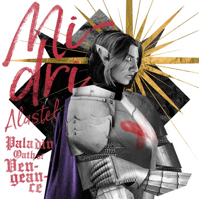 2 2 This is Midri Alastel, another #DnD #character. She's an #elf #paladin oath of Vengeance. #DnDart #DnDcharacter #oc #characterdesign #characterart #illustration #characterillustration #knight #ttrpg #ttrpgcommunity #ttrpgfamily #ttrpgart #rpg 23/01/03 22:01
