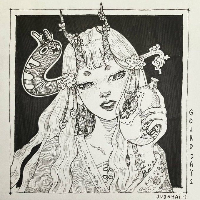 Day 2 #gourd I haven't draw in this way for long time lol 😬🤯😖 I will try many style that i can~ For experiment and fun✌️💖 จะลองหลายๆลายเส้นดูในเดือนนี้ ถือว่าฝึกหาสไตล์~ . . . #fauntober2022 #inktober2022 #inkdrawing #วาดรูป #ชุมชนนักสร้างสรรค์