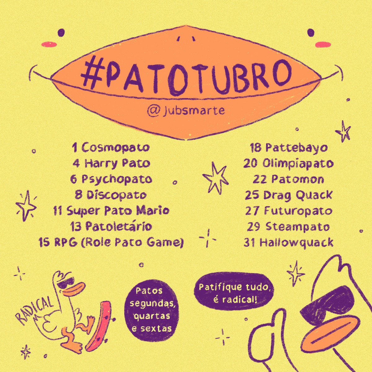 Vou deixar minha lista do #patotubro aqui também. Eu vou postar lá no meu instagram e compartilhar da galera, mas se alguém aqui fizer me marca 💜 #inktober2021 #drawtober2021 instagram.com/jubsmarte/