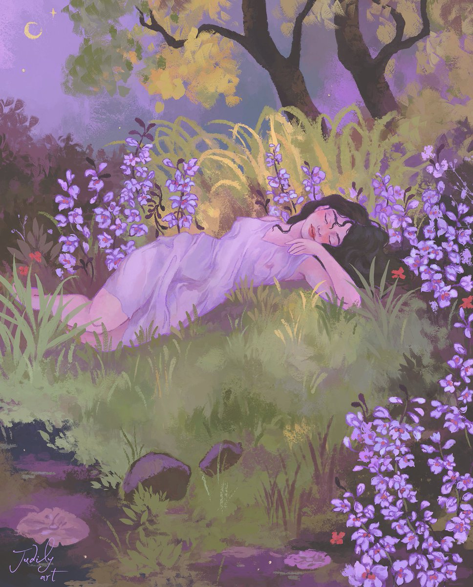 #PortfolioDay hi I'm judy, an arab sapphic illustrator! my work focuses on serene scenes, plants and feminine characters 💜🌿 my commissions, art prints and socials: judily.carrd.co