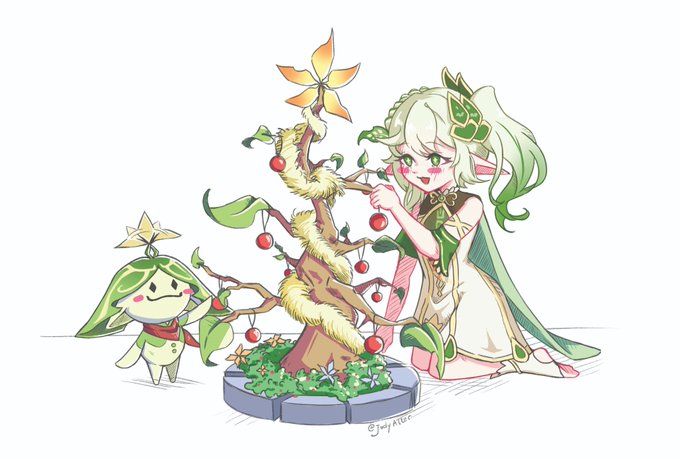 Decorating a Christmas tree you say? That sounds like fun! Come on Arama! ♪(^∇^*) #GenshinImpact #nahida #sumeru #aranara #Christmas #ChristmasTree #kusanali #原神 #原神イラスト #ナヒーダ