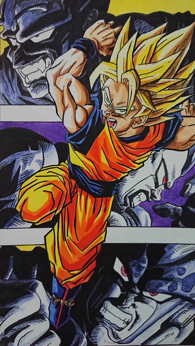 できた✨離れて見るとよく塗れたかな🌀鳥山明先生のドラゴンボールを色鉛筆で模写 #イラスト #絵描きさんと繋がりたい