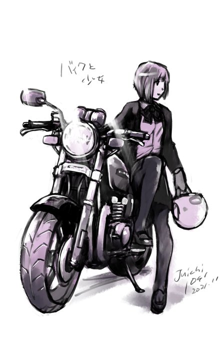 2 10 バイクと少女 メーカーは適当です。見ないで描いたので…。 #バイク #バイクイラスト #女子高生 21/11/11 17:38