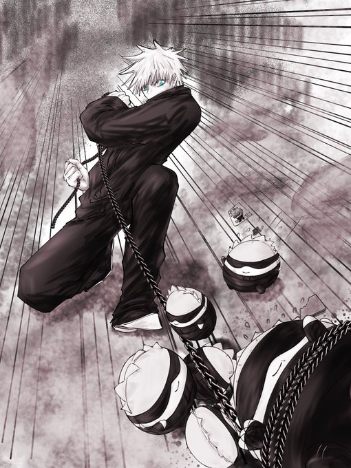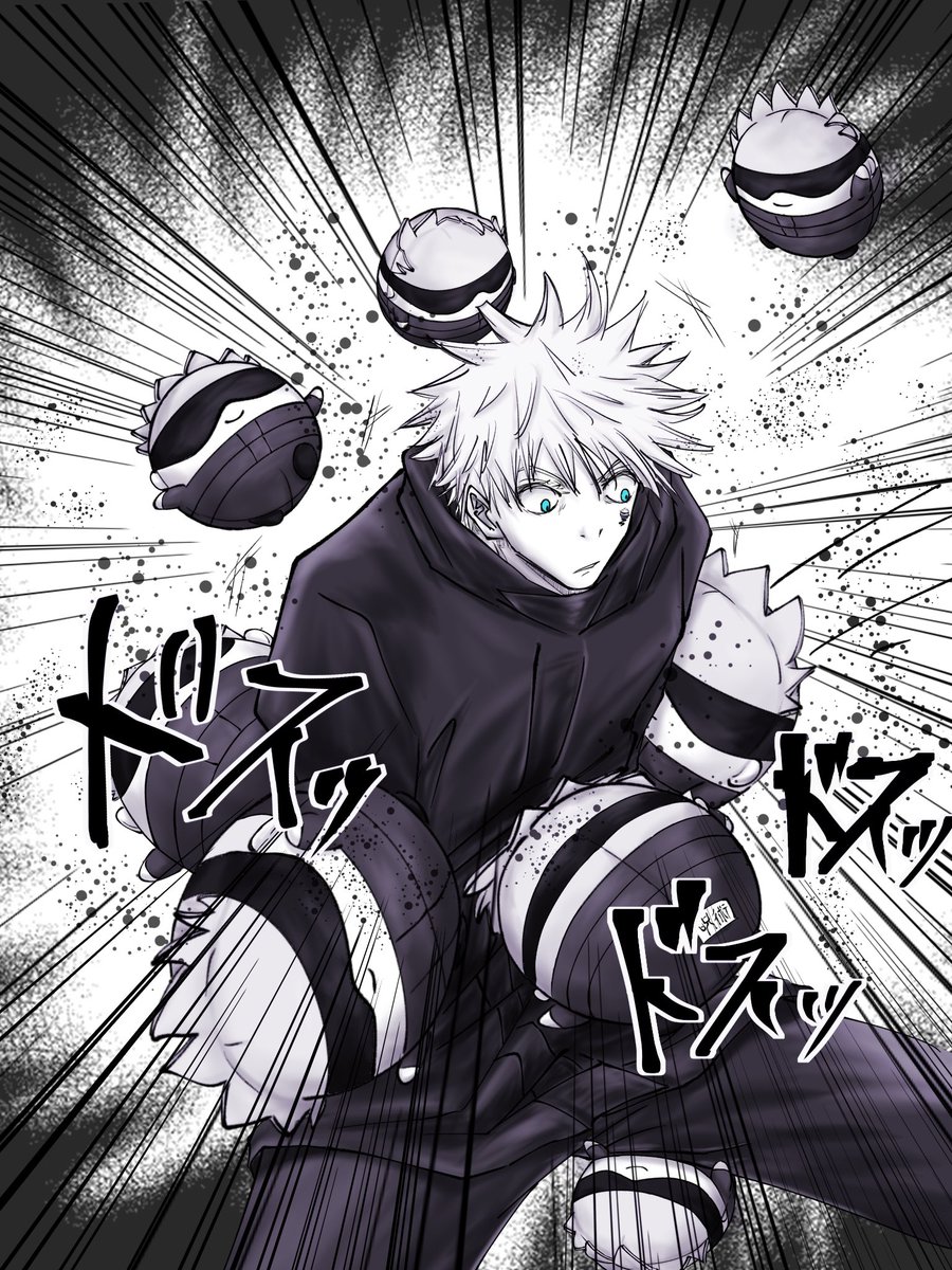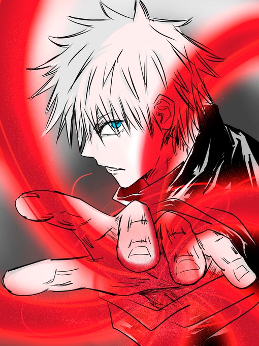 五条悟 虚式『茈』Part2 9月に描いものだから今見ると何か物足りない?🫠 フォロワーさんの誕生日にスキンヘッド✨ ハロウィン絵で🎃の被り物 …と2回遊ばれた実は可哀想な絵なのよw #呪術廻戦ファンアート