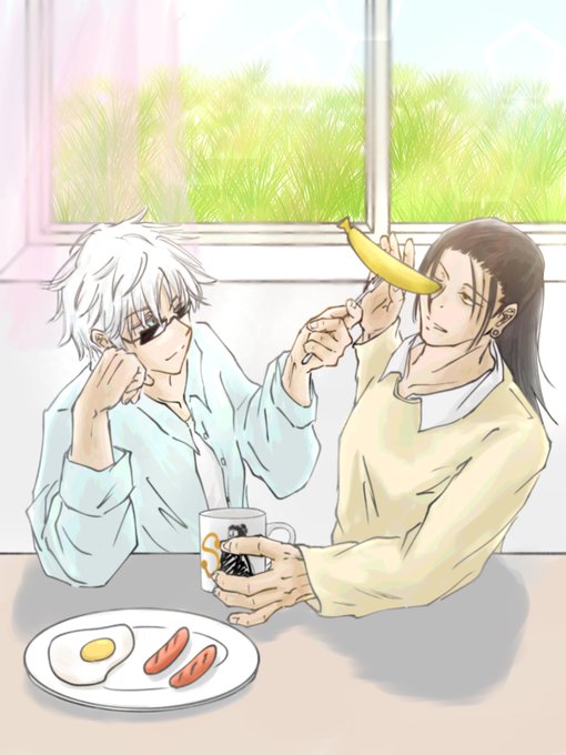 HAPPYBIRTHDAY🎂恵✨ 五条先生から玉犬耳あてのプレゼント🎁 五「恵、誕生日おめでとう。 僕の愛用品♡あげるね♡」 伏「ありがとうございます…(お古😑」 #伏黒恵誕生祭2022 #伏黒恵生誕祭2022 #呪術廻戦ファンアート