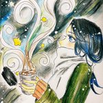 夜空のカフェラテ☕️ #イラスト #水彩色鉛筆 #アナログ #イラスト好きな人と繋がりたい #絵描きさんと繋がりたい
