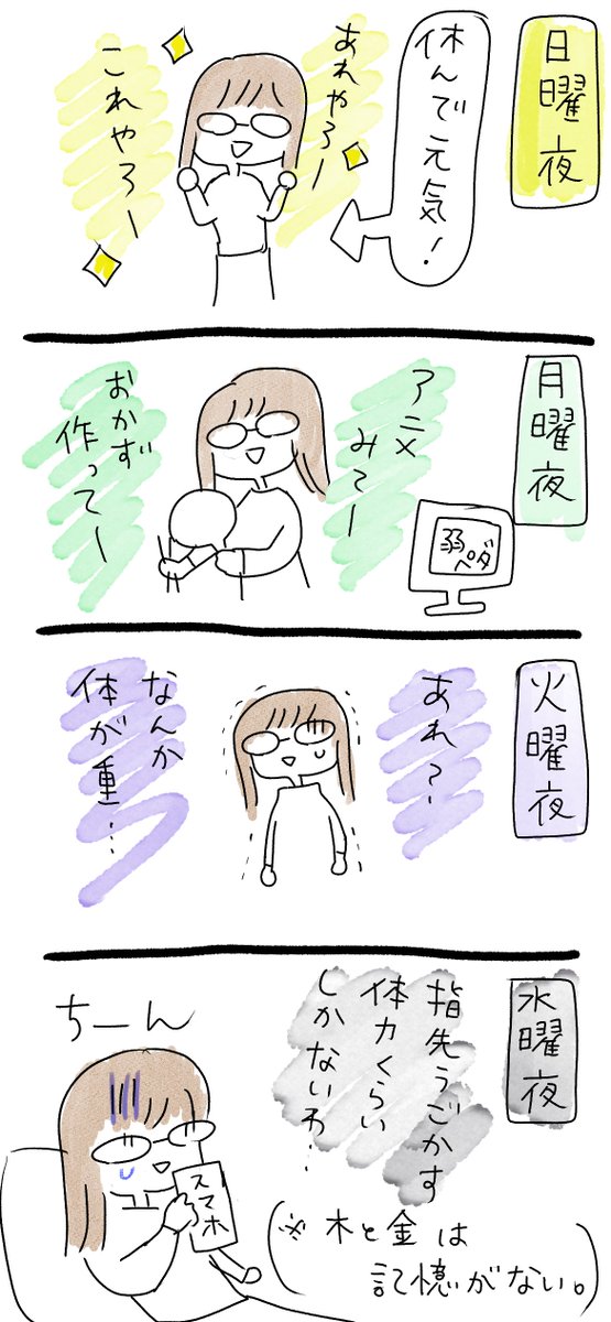 水曜夜あたりから動けなくなる #コミックエッセイ #漫画が読めるハッシュタグ