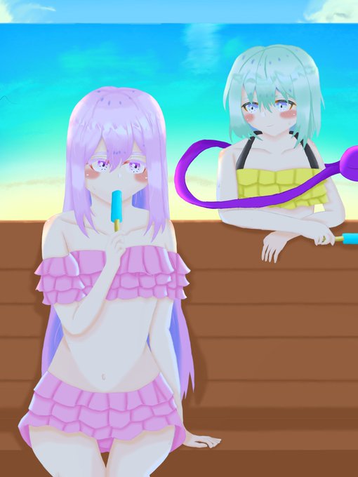 #夏が終わりそうだし今年描いた水着絵を貼ろう この結構頑張ったやつな…
