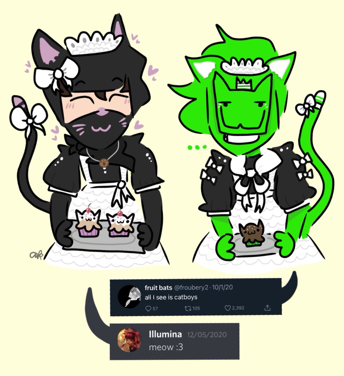 there were more catboy quotes here from these two SOMEWHERE i swear,, for now have Them ehehe >:3c @IlluminaHD @froubery2 #illuminafanart #fruitberriesfanart