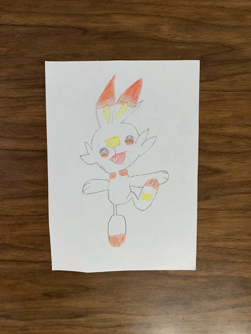 娘(小4)が描いたヒバニー 子どもらしい作品で可愛い #ポケモン #ヒバニー #イラスト