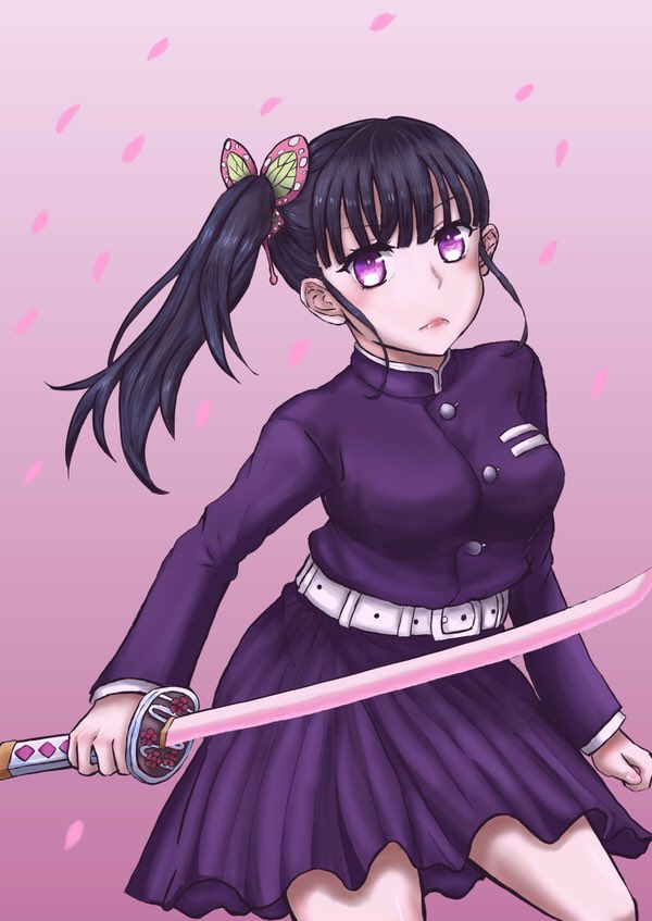 カナヲ描きました。可愛いよね、、、、凛々しくて。マント有無悩んで、着脱可能にしました_(:3 」∠)_ #鬼滅の刃