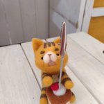猫うさぎペンギン展に出品予定の ‘献身愛シリーズ’のネコ メモ挟むやつ←名前知らん😩 見に来ていただけたら幸いです✨ #猫うさぎペンギン展 #hakomittsu #羊毛フェルト #ねこ インスタ@junjunmohmohに ちょこっとお披露目してます