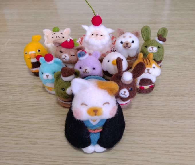 近々納品出来たらと思う おいでにゃす女将 「みんにゃを引き連れてはこみっつ苑へ向かいにゃす お好みの子はいらっしゃいにゃすか?」(ΦωΦ)ニャ~ #はこみっつ #羊毛フェルト twitter.com/hakomittsu/sta…