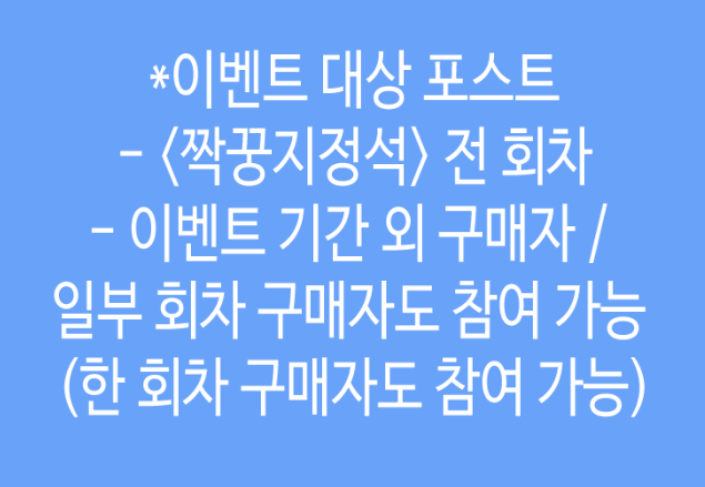 🍁짝꿍지정석 전편 구매(11/5~6)와 후기 이벤트(11/5~12)를 진행합니다! 자세한 사항은 아래 이벤트 포스트를 참고해주세요~! 👇👇👇👇👇👇👇👇 posty.pe/1zltet