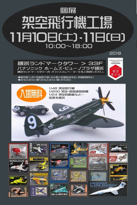 あした、あさっては、横浜ランドマーク33階パナソニック・ホームズで『架空飛行機工場・個展』。あさっては、大桟橋ホールで『ホビーフォーラム』 facebook.com/sumiya.junichi