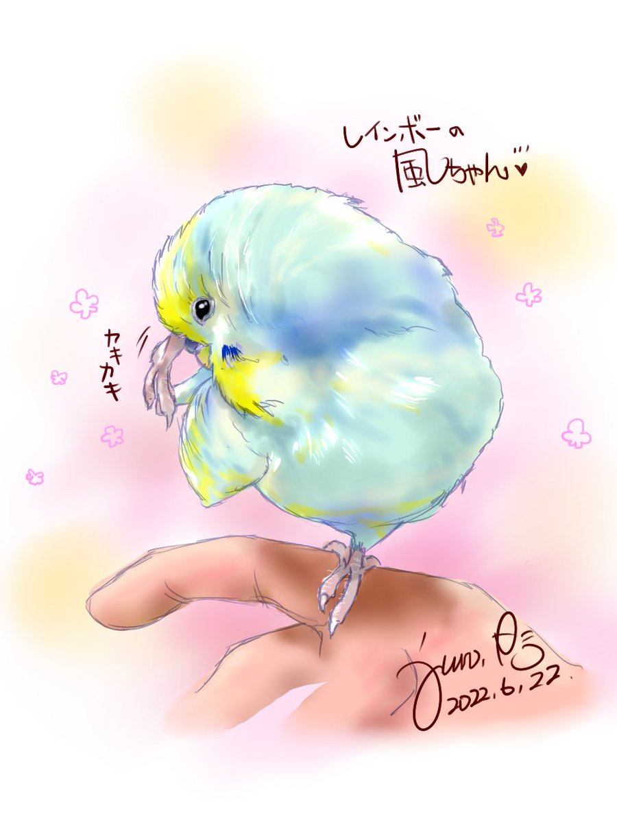 TLでお見かけした🦜インコのぴのちゃん(@piyorin7177様)の羽繕いが🎀可愛らしかったので描かせていただきました😊 #セキセイインコ #セキセイインコイラスト #絵描きさんと繫がりたい #お絵かき