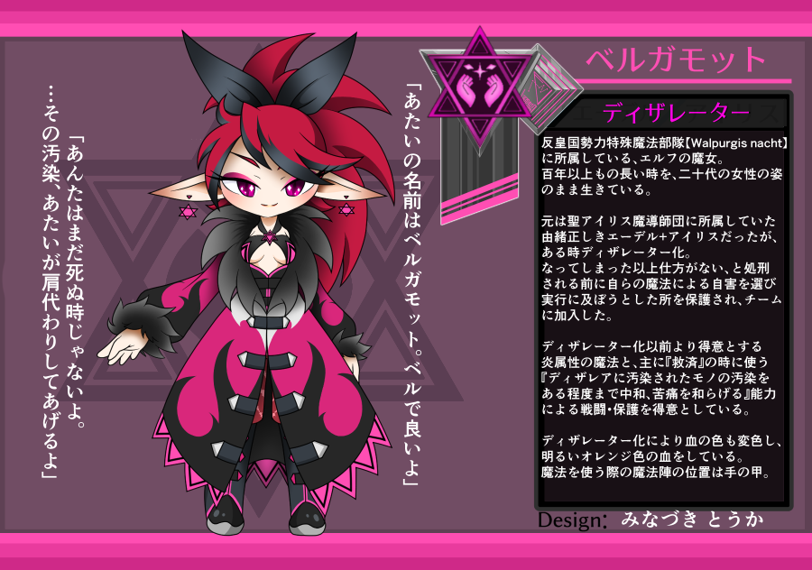 結果発表です! 私がデザインしたキャラクターは④番・ベルガモットでした!🧝🏻♀️🔥 皆様、予想・投票ありがとうございました!🙌🏻🙇🏻♀️🙌🏻 #ディザスコード twitter.com/june_minazuk…