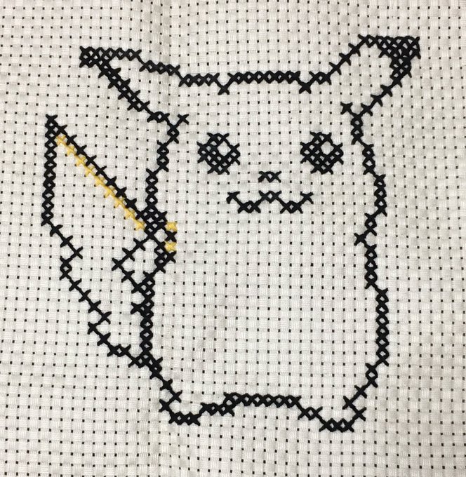 ピカチュウのクロスステッチ、裏側がやたら爽やかになった