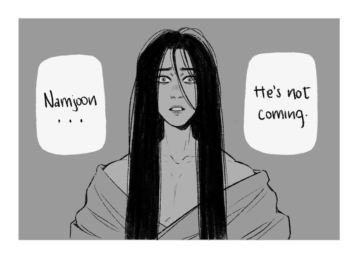 “He’s not coming...” This is a scene inspired by that latest chapter from @jinjinjarajinie ‘s AMAZING fic! It messed me up so bad I had to draw it 😭💕 #btsfanart #namgi #TSOau